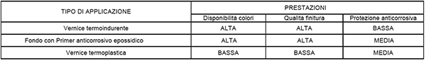 B.3.3 Il grado di protezione anticorrosiva è fortemente influenzato dal tipo di superfici dei manufatti grezzi (zincatura a caldo, a freddo, ferro nero), dalla preparazione su di esso effettuata dal Cliente e dalla scelta del “tipo di applicazione” (par. B.2.2).